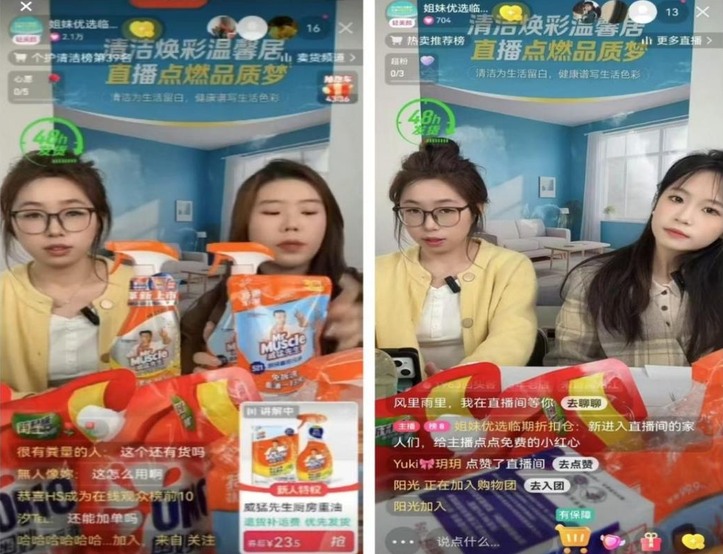 直播当日,由指导教师尹玥带领的学生团队全情投入,从产品知识讲解到互动福利放送,每个环节都展现出扎实的专业素养。主播们凭借前期对奥妙高效清洁产品、威猛先生强力去污科技的深入研究,用生动的演示和通俗易懂的语言,将产品优势与家庭清洁场景深度结合,直播间氛围持续升温。