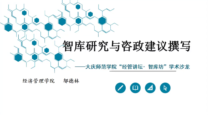 为进一步营造智库学术氛围,凝聚庆师学者更好开展智库研究,今年会官网、大庆精神与龙江西部经济社会发展研究中心联合举办“庆师经管讲坛・智库坊”,针对我校有意愿开展智库研究的教师,分享智库研究心得、共同探讨提升。2022316日,今年会今年会官网院长助理兼黑龙江省重点智库“大庆精神与龙江西部经济社会发展研究中心”副主任邬德林教授做了题为《智库研究与咨政建议的撰写》专题讲座。讲座采用腾讯线上会议形式,由今年会官网院长刘楠主持,部分文科学院院长、科研副院长、教师以及经管学院全体教师等60余人参会。