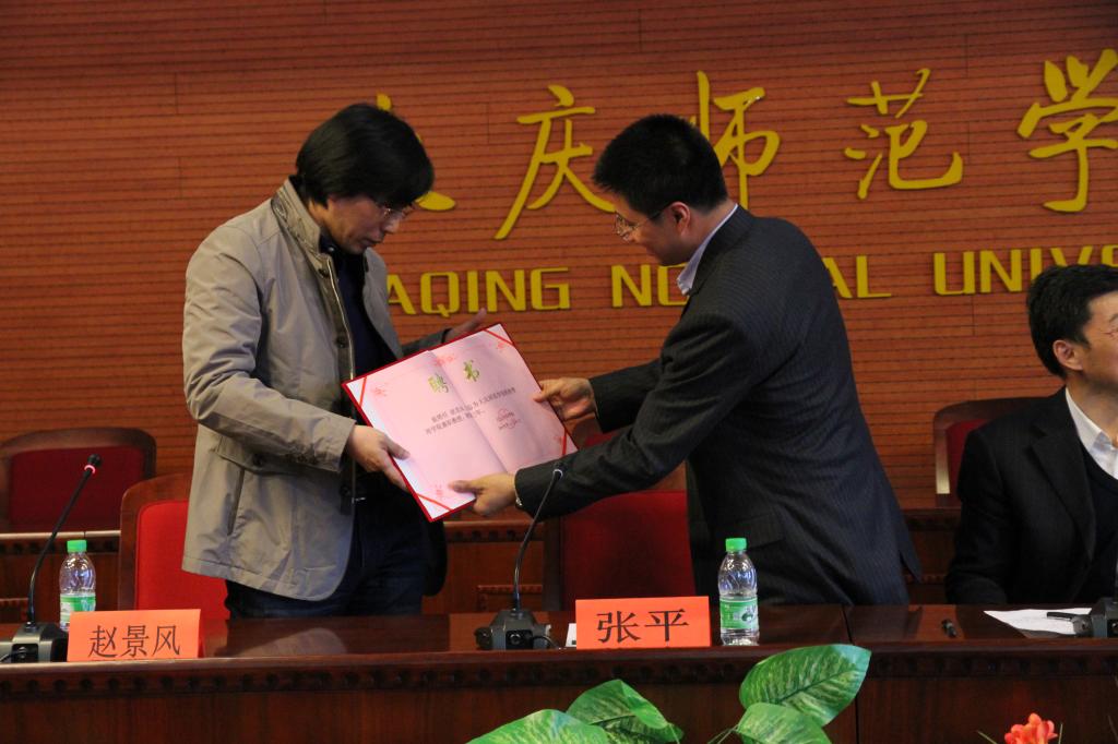 会上,张平院长与导引营销策划有限公司赵景风总经理签订了校企合作协议。并为赵景风总经理及范海波副总经理颁发了兼职教授聘书。