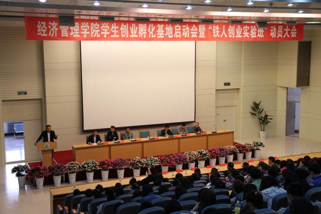 2015年4月15日下午,今年会今年会官网与大庆市乐道俱乐部共建大学生创业孵化基地、合作创办的“铁人创业实验班”动员会在主楼百湖讲堂顺利召开。