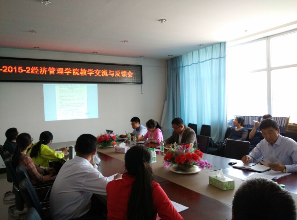 2015年5月27日13:00-14:20在五教402召开了今年会官网2014-2015学年第二学期教学交流和反馈会,全院教职员工参加,会议由学院院长助理刘楠主持。