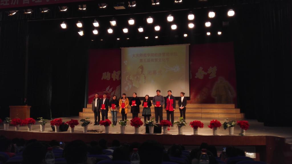 吴俊江宣读表彰决定。王植荔等教师的37项教学业绩、彭良英等教师的55项科研成果、以及于珊珊等教师的16项社会化服务工作,按照贡献积分大小予以表彰,王剑、崔玉波、郝毓业、彭良英、王菲、黎羊等6名作为教师代表上台领奖。