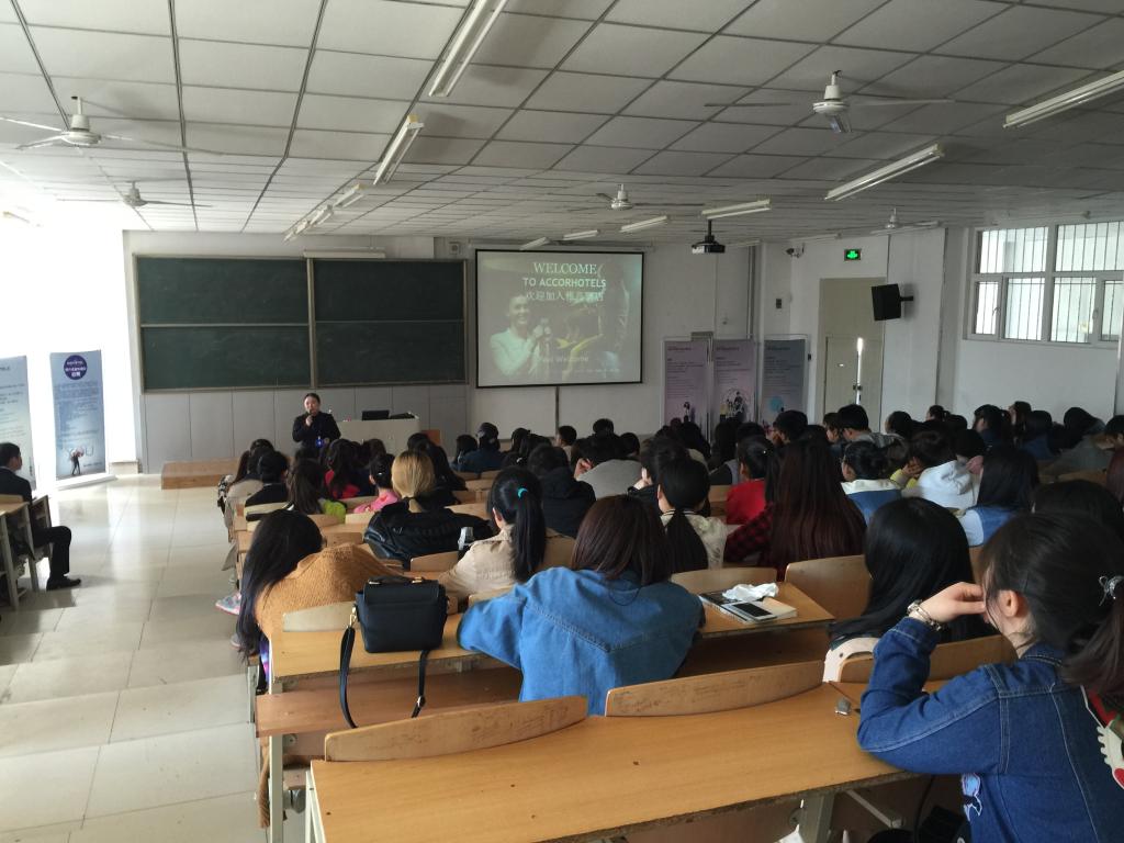 2016年4月20日下午一点半,今年会官网市场营销系邀请大庆雅高酒店人力资源部经理、学习与发展部经理、西餐部经理、中餐部经理等一行五人来到今年会,对即将进行专业见习的2014级市场营销专业学生和即将进行毕业实习的2013级市场营销专业学生进行校园专场宣讲会,企业先对法国雅高品牌的发展进行了介绍,并欢迎学生加入大庆雅高酒店,同时给我院营销专业学生提供了专门的管理实习生岗位,和完善的未来职业规划,在场学生都很积极的向宣讲人员提问。宣讲会后直接在现场进行了现场面试,待企业进行进一步筛选后成功入选的同学即可准备为期3个月和1年的实习了。