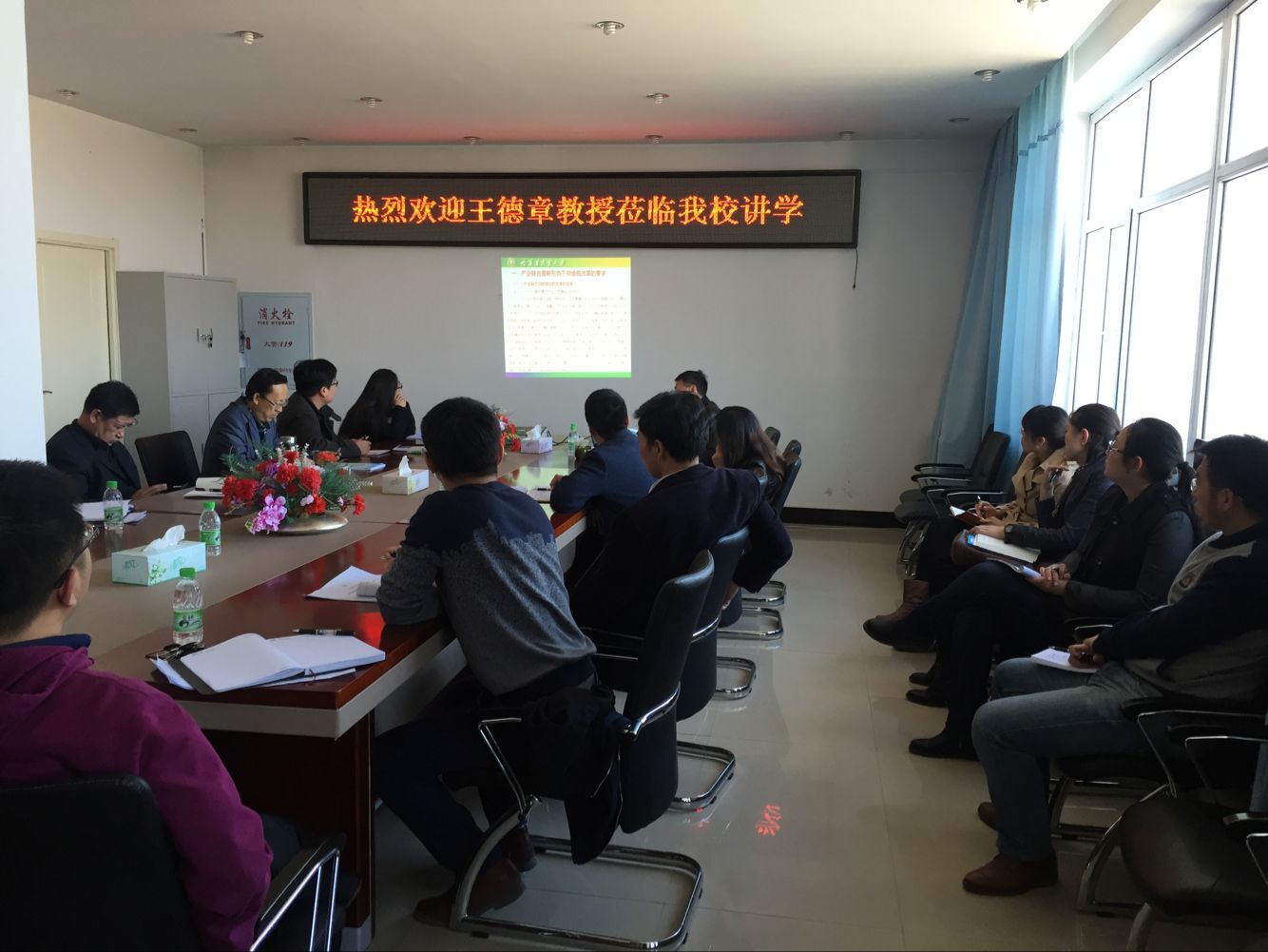 报告过程中王教授结合“五常稻米”等贴近生活的实际案例介绍了产加销一体化营销模式及特点,并以详实的数据图示使教师更加直观地了解不同营销模式的绩效。报告结束王教授对张平院长的国家社科基金项目结题提出了指导性建议。