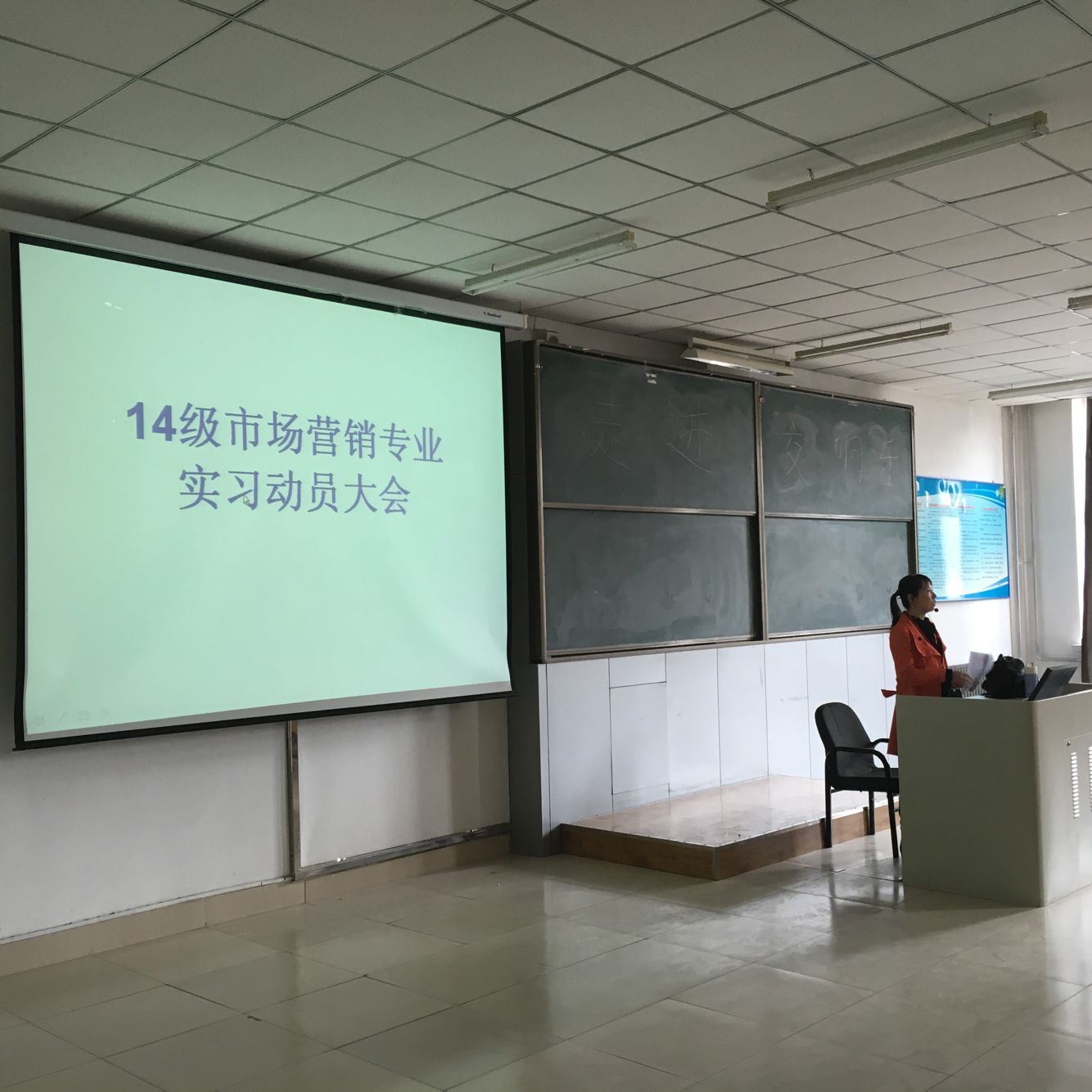 2016年5月4日下午16:00,今年会官网市场营销系2014级实习动员大会在主楼1-1举行。今年会官网市场营销系系主任尚德萍、指导老师于珊珊、孙伟仁、邬德林以及2014级市场营销系全体学生出席了本次动员大会。