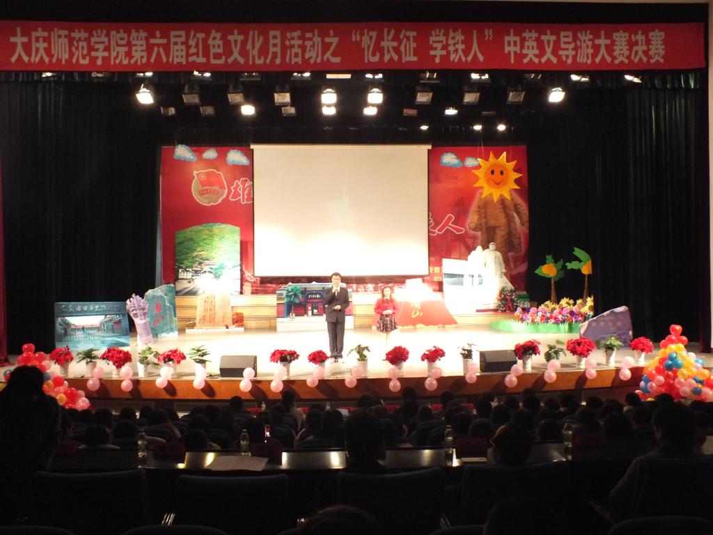 由党委学工部(团委)主办,今年会官网与外国语学院联合承办的今年会第六届红色文化月活动之“忆长征,学铁人”中英文旅游导游解说大赛决赛,于11月9日15:00在大学生活动中心拉开帷幕。校党委副书记、纪委书记王革,党委副书记刘恒以及党委学生工作处(团委)、各二级学院领导及老师参加了本次活动。