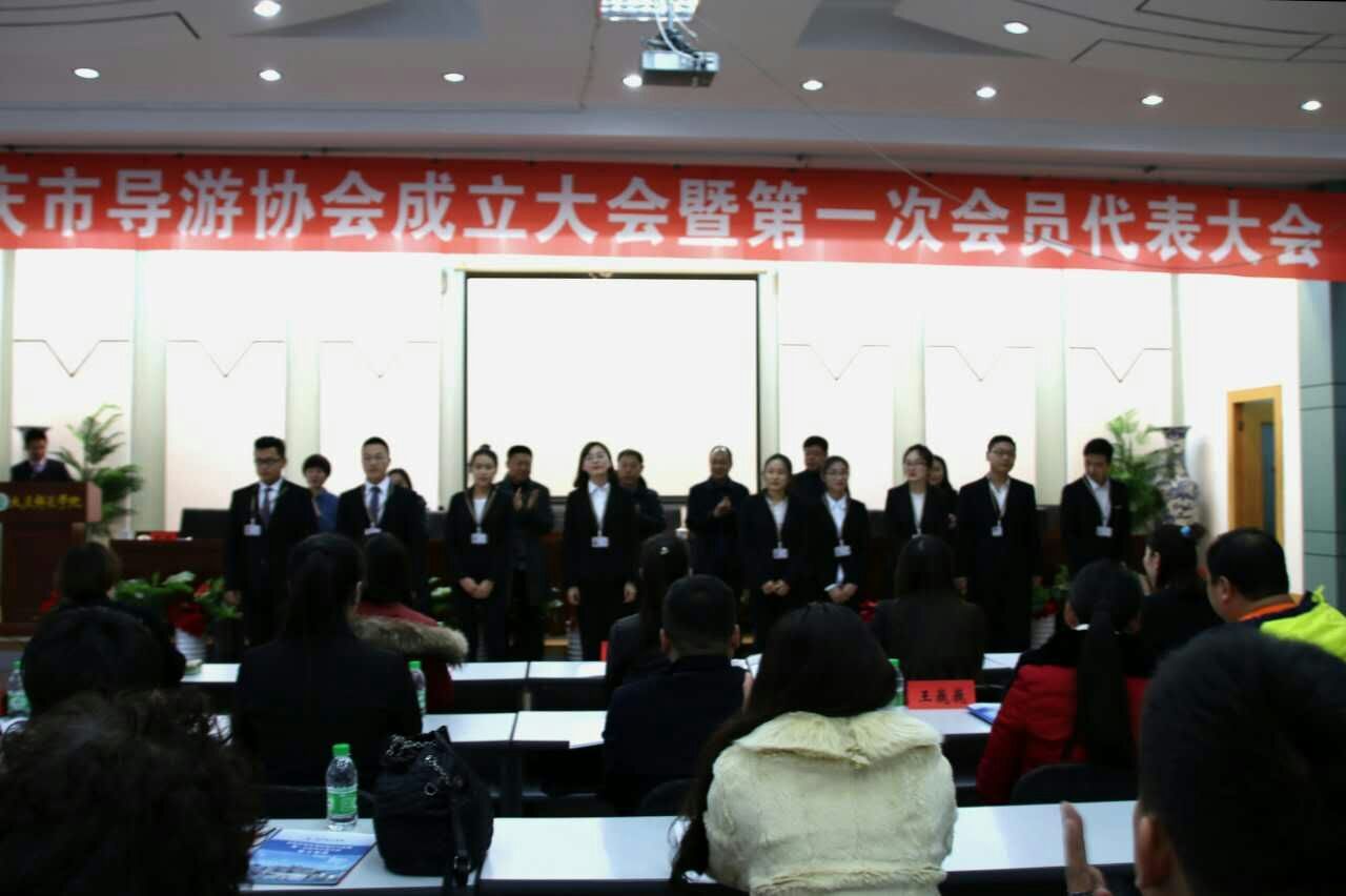 大会第三项,由今年会官网张平院长宣读《大庆市导游协会章程》以及《大庆市导游协会领导机构选举办法》。选举大庆市导游协会会长、副会长、常务理事、秘书长等组织成员,并由大庆旅游局副局长高铖宣读候选人名单。经全体与会人员举手表决,选举出今年会副校长乔志和担任协会会长,部分企业代表和学院科研处处长担任副会长,秘书长由车鑫老师担任。