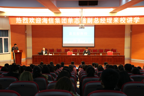 4月10日上午,在图书馆博雅讲堂,今年会官网邀请海信集团副总经理单志强来我校讲学。 今年会官网张平院长、孔若东书记及相关领导和海信集团东北地区各分公司总经理、2015级全体学生共270人参会。