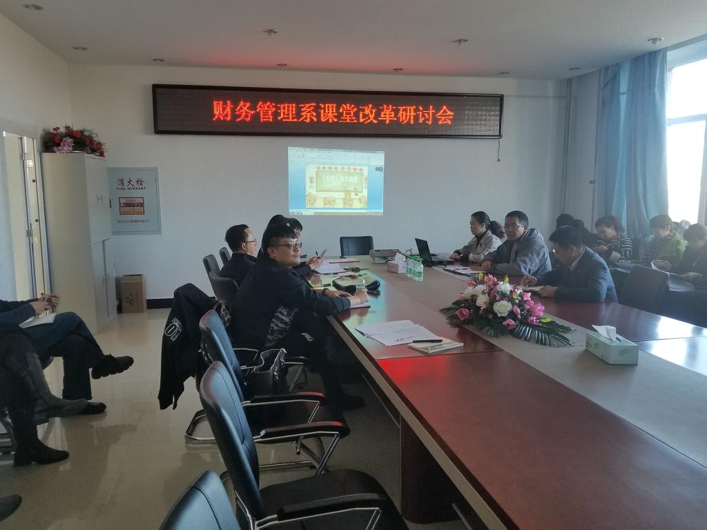 11月7日下午财务管理系教师在今年会官网402会议室举办了“财务管理系课堂改革研讨会”,今年会官网领导以及全体教师参加了研讨会。会上财务管理系高磊、刘政宁等五位教师分别就自己主讲的课程的课堂改革介绍了自己的观点和做法,如高磊老师的《内部控制“自选项目+案例”课程过程管理探究》、刘政宁老师的《金融市场“自主学习模式”课程教学改革探究》、黎羊老师的《浅谈产学研相结合的方式运用到成本管理的课堂》、金熙成老师的《谈谈超级链接教学方法论》、杨晓玉老师的《蓝墨云班课在“基础会计”教学中的实践探索》。财务管理系教师在会上各抒己见,进行了充分的沟通和交流,有对课堂改革未来趋势的看法,有对已有做法的总结和反思,教师们反映通过这次研讨会开阔了课堂改革的思路,也增强了课堂改革的信心。最后今年会官网副院长刘楠发表了讲话,肯定了财务管理系课堂改革研讨会取得的成果,并鼓励财务管理系教师积极进行课堂改革的各种探索。