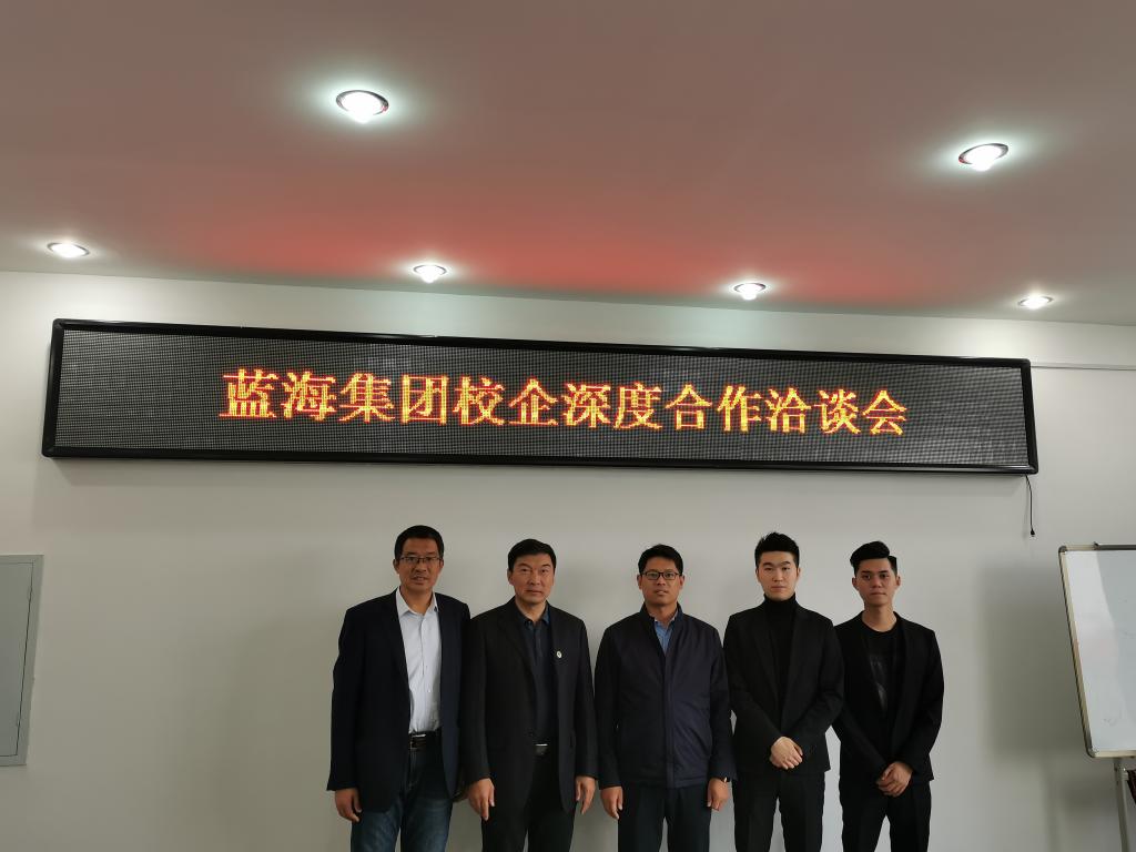会议第一项内容请刘院长介绍今年会官网情况,包括人才培养目标、人才培养特色、人才培养定位和校企合作情况等。第二项内容请李总介绍蓝海集团情况,特别是在人才培养和近几年本科生培养方面有哪些政策和收获,或者提出哪些问题是需要双方讨论解决的。第三项请孔书记介绍一下我院就业情况,双方就实习就业问题开展讨论。第四项会议结束,双方合影留念。