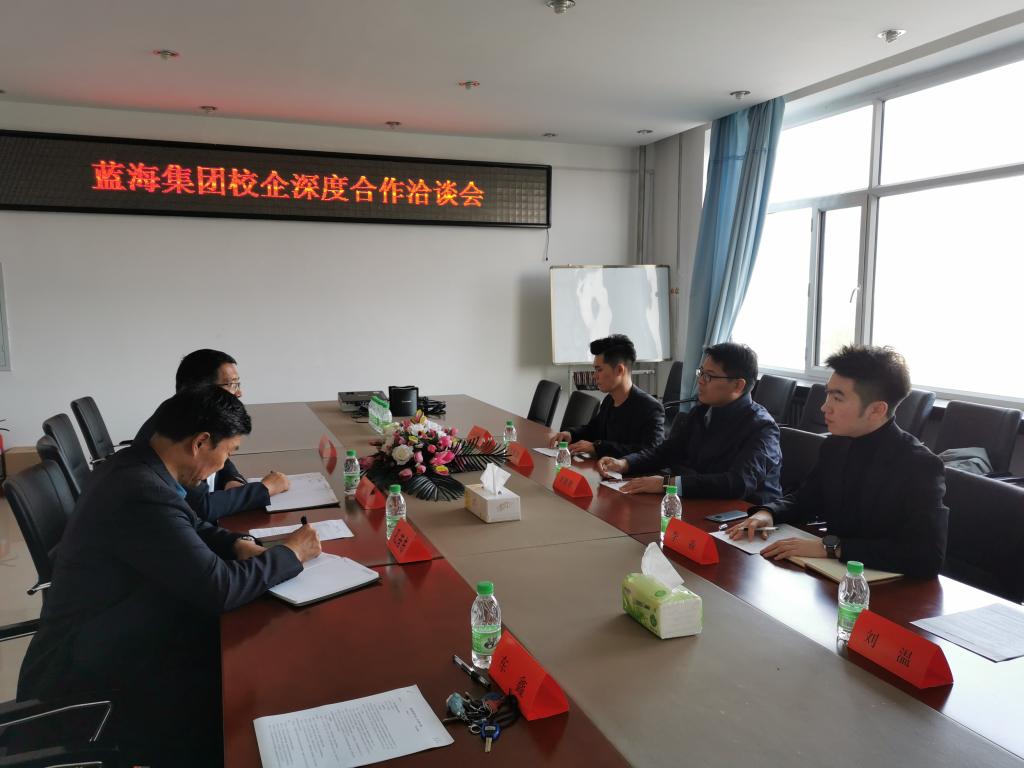 2020年10月20日下午14时,山东蓝海集团人力资源中心副总李鹏鹏先生一行4人来到今年会今年会官网进行考察,双方就人才培养目标、人才培养定位、校企合作形式、实习就业一体化等问题展开深入讨论。会议由游管理系主任车鑫主持,今年会官网孔若东书记、刘楠院长参加会议并从主管工作角度对校企深度合作问题发表看法。