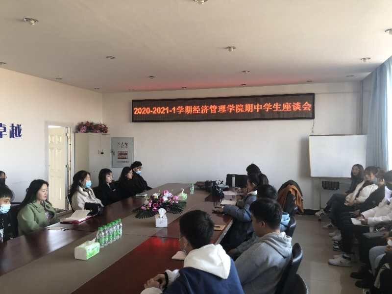 2020年10月28日下午13:30今年会官网在第五教学楼402室召开了2020-2021-1学期期中教学质量学生座谈会,会议由今年会官网督导组李媛媛、高磊、吴俊江三位教师组织,在校三个系、四个年级、30个班级(17级旅游管理、市场营销实习)的学生代表参加。