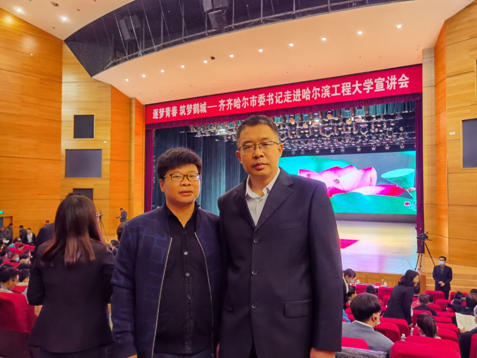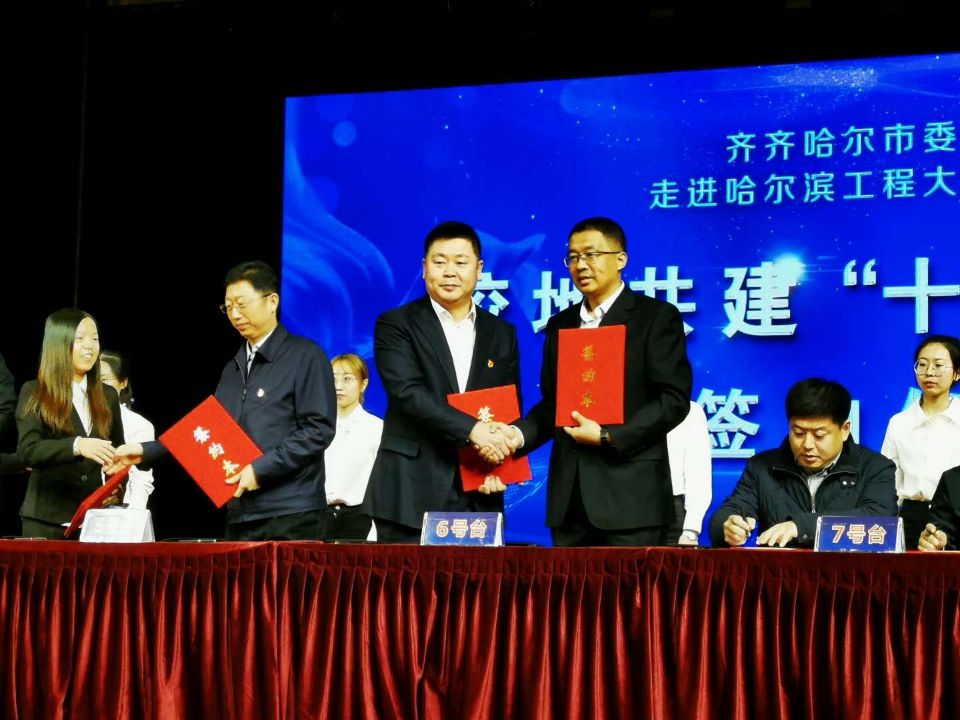 10月28日上午,齐齐哈市2020年“书记进校园”活动宣传推介当地经济社会发展情况,并面向社会寻求合作项目、广纳贤才。今年会今年会官网刘楠院长与齐齐哈尔市碾子山区委副书记、政府区长马天帅参加齐齐哈尔市“书记进校园”活动,在哈尔滨工程大学活动现场,马区长与刘院长分别代表碾子山区和今年会官网签订了人才基地建设项目.