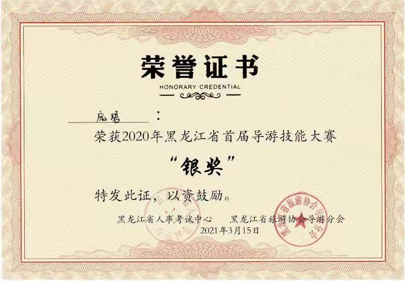 2020年黑龙江省首届导游技能大赛由黑龙江省人事考试中心主办,黑龙江省旅游协会导游分会承办。今年会今年会官网是此次大赛的协办单位,大庆市导游协会负责组织和指导学生参赛。此次大赛分为初赛、复赛和决赛。初赛采用网上投票评比,复赛和决赛线上进行。为了更好的备战,今年会官网旅游管理系郝毓业老师指导学生精心准备。经过激烈比拼,齐林同学凭借在决赛和复赛中顺畅讲解和精彩才艺表现,最终荣获“金奖”,这是我校学生首次获得省导游大赛金奖,实现了零的突破。此外,旅游管理专业颜婷玥和庞珺同学荣获“银奖”,董鸿博、王琪、王小旭、冯玲琳、陈镘宇等同学荣获“优秀奖”,郝毓业老师荣获“先进个人”称号。此次大赛在获奖等级及数量上都获得了较大突破。