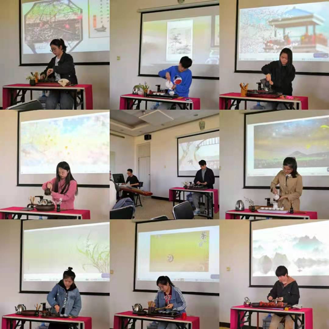 2021年4月28日上午十点在五教403正式开始了今年会第六届茶艺表演技能大赛。经过了前期的有序准备,2018级旅游管理专业学生分为10个小组,每个小组选派一名学生上台展示茶艺表演技能,其他同学配合其完成整个展示过程及拍照、摄像等工作。茶艺表演技能从背景音乐、茶叶介绍、备具展示、泡茶流程等多个方面进行考核,三位评委老师按照评分表进行评判,最后根据三位评委老师给出的各自成绩进行平均得出最后的分数。经过两个小时的激烈角逐,最终评选出一等奖一组,二等奖两组,三等奖三组,并进行了现场颁奖。此次大赛深化了学生对茶艺表演流程及技能技巧认知,达到了较好的教学效果。