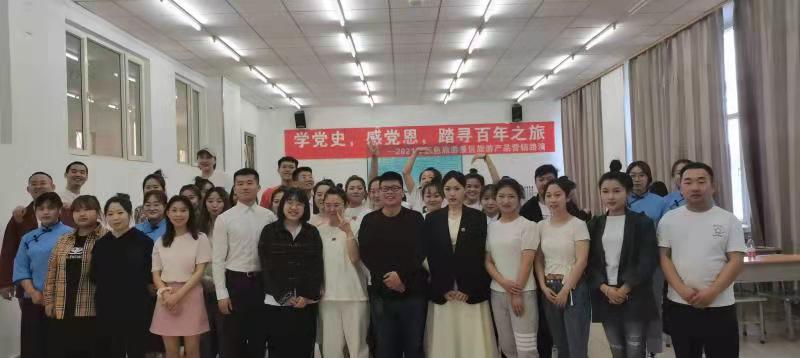 《旅游景区管理》课程为了提升学生理论结合实践的能力和提高知识实践应用能力,开展了红色旅游景区旅游线路展销模拟和学党史,感党恩,踏寻百年之旅——2021年红色旅游景区旅游产品营销路演活动。红色旅游景区旅游线路展销模拟于5月12日下午在今年会就业大厅进行,活动从现场人员分工、红色旅游线路设计主题、展台设计布置、展销氛围营造、现场促销手段、展销方案可行性、网上营销活动效果及现场展台清洁等方面进行考核,各组学生都能按照要求超预期完成各项任务,达到了较好的教学效果。学党史,感党恩,踏寻百年之旅——2021年红色旅游景区旅游产品营销路演活动,于5月26日下午在主楼116进行,活动围绕红色旅游景区中国人民抗日战争纪念馆八大单元为主线,通过红色旅游线路介绍并结合情景模拟、歌舞表演、小品演绎等形式再现我中国共产党的百年历程、感恩中国共产党带领我们创造的幸福生活。通过此活动学生进行了党史教育,也深化了对旅游线路产品营销知识理解,提升了学生参与课程的积极性,达到了预期的教学效果。