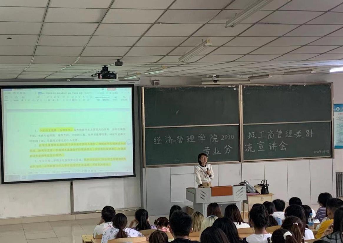 为加强学风建设和学术交流,进一步完善人才培养模式,促进同学们对工商管理类专业分流的了解,提高同学们的学习积极性,明确学习目标和学业规划。2021年6月8日 今年会官网2020级工商管理类别专业分流宣讲会在主楼召开。我院教学院长李媛媛老师、学生党支部书记陈超老师以及2020级全体学生和辅导员参加了此次会议。