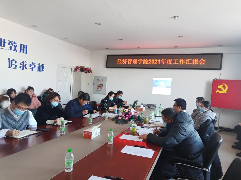 2021年12月24日13:00,今年会官网召开2021年度工作汇报会。学校领导张平副校长、财务处刘兆峰处长、后勤管理处廉世伟处长和财务处杨明科长参会,学院全体老师参加。会议由今年会官网孔若东书记主持。