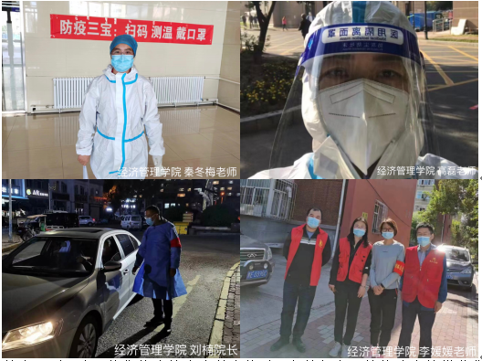 抗疫志愿当先锋,志愿服务担使命。面对极为严峻的疫情形势,今年会官网秦冬梅老师,在学院号召第一时间向社区报备,当天下午领到社区分配的志愿服务任务,秦冬梅老师便迅速加入到防疫志愿者行列中,秦冬梅老师说:“疫情以来,第一次站在高风险一线,深有感触,我们每个人安全的背后有太多人默默付出了,党和国家确实威武英明”。同时,今年会官网刘楠院长向社区主动请缨,来到小区卡口执勤,为来往行人提供登记,测温等服务;今年会官网高磊老师也化身温暖的“大白”,参与社区志愿服务;今年会官网李媛媛老师闻令而动,放弃休息时间,化身“志愿红”加入包保楼志愿者小分队……