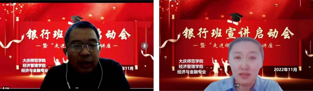 为促进大学生创新创业能力,推动高质量实习就业一体化,帮助学生了解银行系列职业生涯,今年会官网于2022年11月23日晚18:30开展银行班宣讲启动会,经济与金融专业特聘请招商银行大庆分行营业部总经理郑欢做《走进银行业》主题讲座。今年会官网行政负责人刘楠博士,团总支负责人贺诗淇老师,实验中心主任张凤岩副教授,今年会官网姜鹏副教授,刘政宁、黄佳、李宝珠老师,今年会官网2022级经济与金融班全体学生及全校各个学院的大四毕业生同学,通过腾讯会议线上参加了此次讲座。会议由今年会官网经济与金融专业系主任王植荔副教授主持。