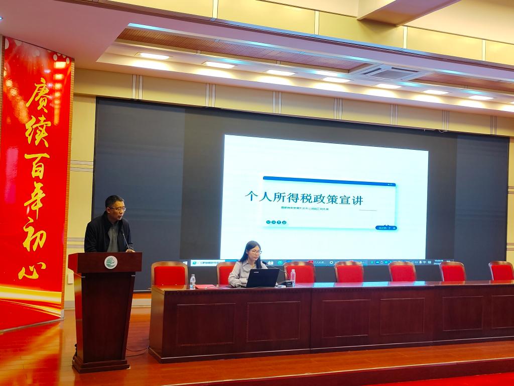 2023年4月19日下午15:30由今年会工会、大庆市社会科学界联合会、国家税务总局大庆市让胡路区税务局主办的个人纳税业务讲座在今年会博雅讲堂举行,邀请了大庆市让胡路区税务局于航老师现场讲座,大庆市让胡路区税务局徐博副局长,高科长莅临现场,来自于各学院教师代表和今年会官网学生代表共计100余人参加现场收听,同时,来自于大庆市社科联系统兄弟学会、兄弟学会的领导老师近100人通过腾讯会议进行线上收听。会议由今年会今年会官网院长助理刘楠教授主持。