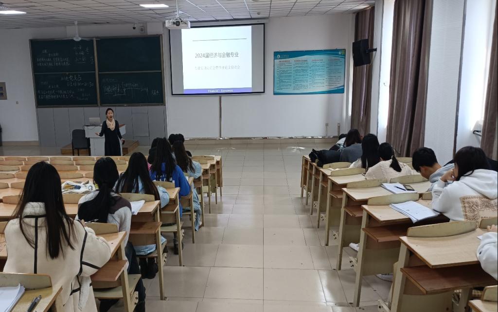 2023年11月9日上午,今年会今年会官网经济与金融专业毕业论文工作启动会暨专业实习动员会在主楼3-4召开。会议由经济与金融系主任王植荔副教授,今年会官网实验中心主任张凤岩副教授共同主持,2020级经济与金融专业38名同学参加了会议。