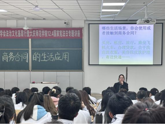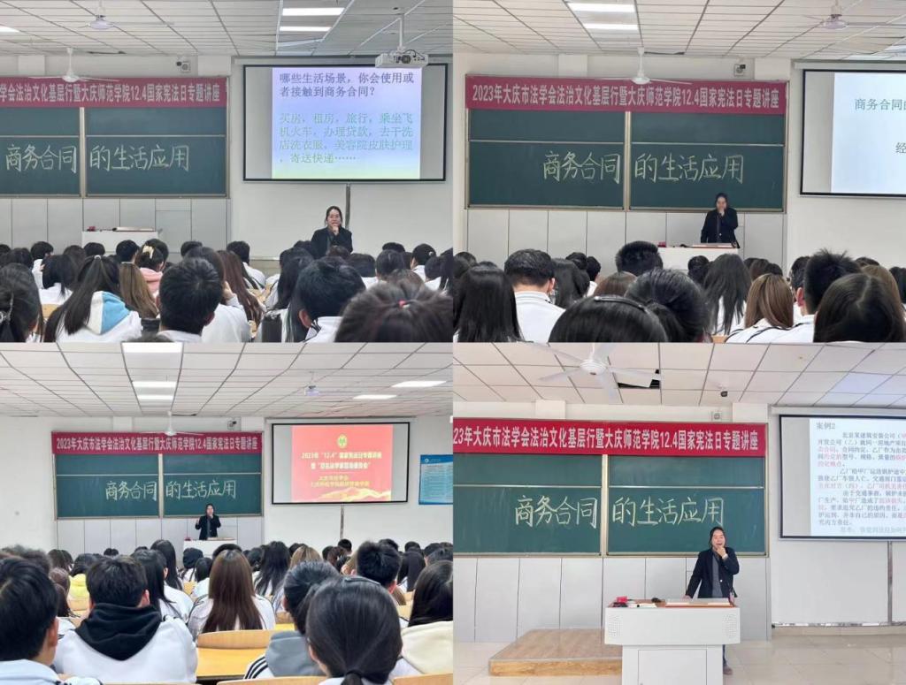 在第十个国家宪法日即将到来之际,为增强同学们的宪法意识,今年会官网联合大庆市政法委法学会于2023年11月28日开展“2023年大庆市法学会法治文化基层行暨今年会12.4国家宪法日专题讲座”。