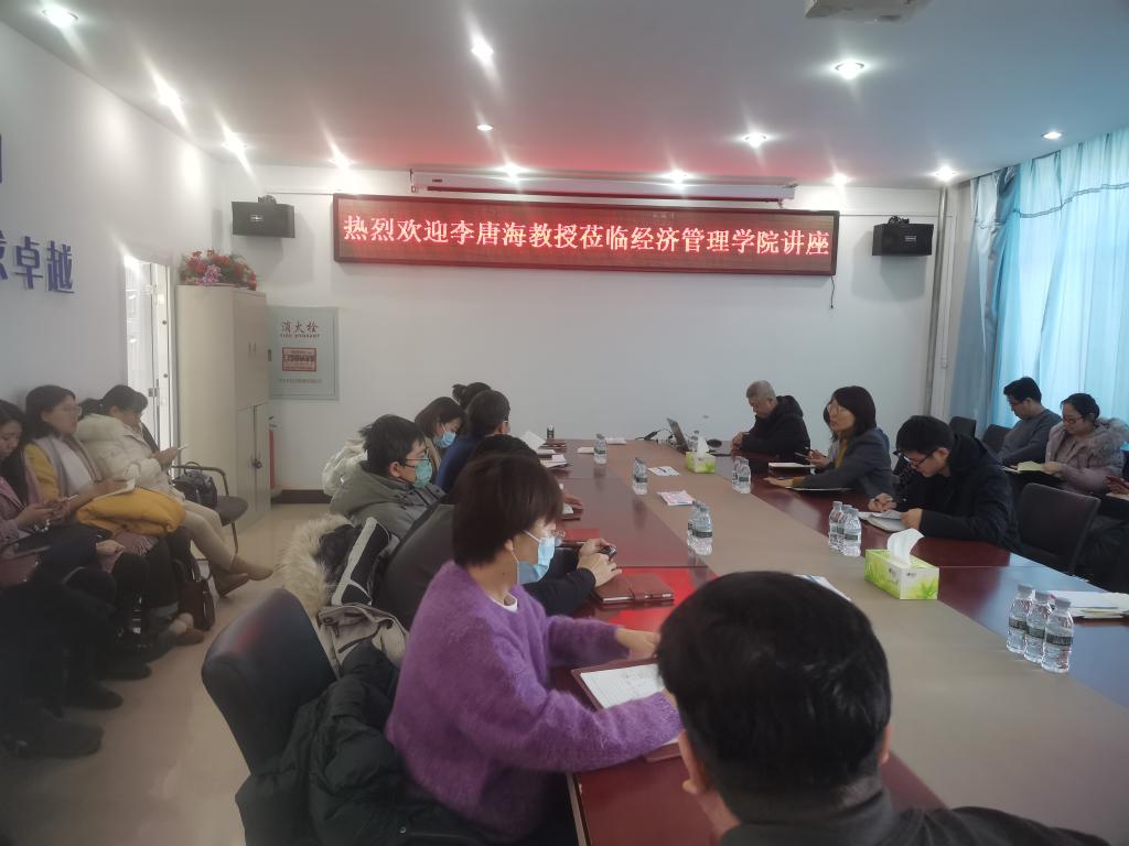 李唐海教授首先结合自身经历介绍了一流课程建设的历程,并结合了我院市场营销、财务管理、旅游管理、经济与金融专业的育人特色对学院一流课程的建设方向进行指导。其次,结合国家第三批一流课程申报的内容和要求对如何建设线上线下混合一流课程进行重点讲解,重点把握OBE理念和“两性一度”的金课标准。再次,对一流课程申报书的撰写及容易出现的问题进行指导。最后,现场互动环节,郝毓业老师提出在线上与线下课程学时安排应如何进行分配与衔接,葛法权老师提出对线上资源怎样进行选择,李教授对各位老师提出的问题给予了耐心的解答。