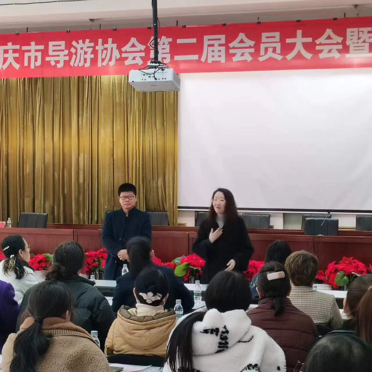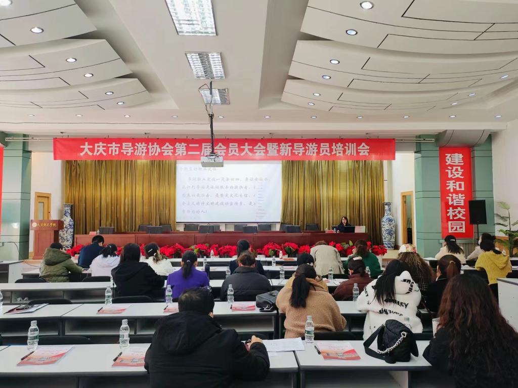 2024年3月30日上午,在今年会铁人讲堂,召开了大庆市导游协会第二届会员大会暨新导游员培训会。会议第一部分召开大庆市导游协会第二届会员大会。今年会官网院长刘楠发表了热情洋溢的欢迎词,大庆市导游协会法人郝毓业对大庆市导游协会第一届工作情况做了汇报。大会通过了修订的《大庆市导游协会章程》。选举产生了大庆市导游协会第二届会长、副会长、秘书长、副秘书长、常务理事。大庆市导游协会第二届会长车鑫为新当选的副会长、秘书长、副秘书长、常务理事颁发聘书,并发表讲话,对下一阶段的工作做了说明,同时由协会的会长和副会长为新导游员颁发了全国导游资格证书并进行合影留念。