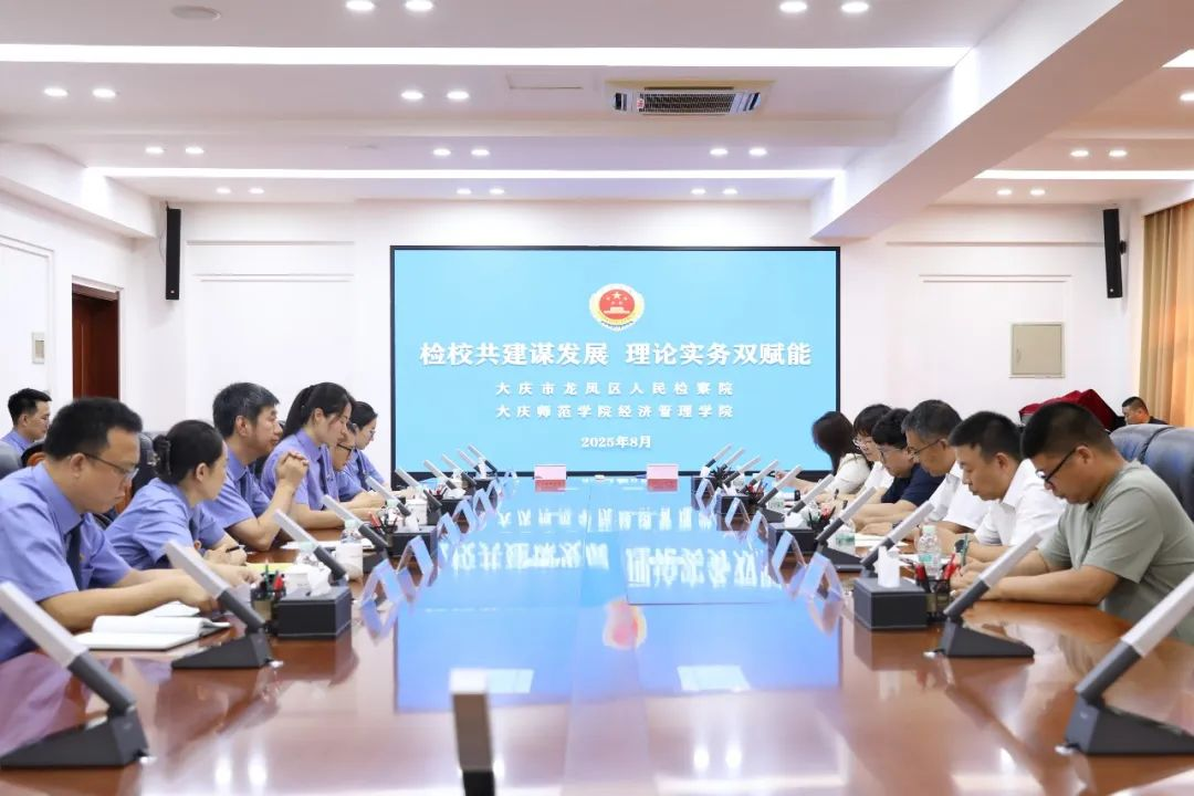 刘楠表示,检校共建找到了理论研究的沃土,做学问不能窝在象牙塔里做学问,经管学院的研究方向与检察机关的公益诉讼职能有共同领域,检察机关的履职和案例是理论研究的“丰富养料”。找到了智库建设的钥匙,经济管理学院有多个省市级智库平台,多篇咨政建议获得各级领导批示,较好发挥了参谋建议作用,与龙凤区检察院合作能够丰富智库平台建设,提高咨政建议的精准性和实效性。找到了服务经济的途径,龙凤区检察院近年来持续推动法治化营商环境建设,为企业解决了一些涉法难题,也为经济管理学院开展经济分析与研究提供了鲜活事例。