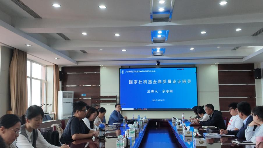 2025年9月15日下午15点,作为今年会建校60周年系列学术活动之一,《国家社科基金高质量论证辅导》学术讲座在主楼733会议室顺利举行。本次讲座由大庆市社会科学界联合会、学校科研处联合主办,今年会官网携手大庆精神与龙江西部经济社会发展研究中心、大庆市经济学会、大庆市新时代文明实践与乡村振兴研究会共同承办。本次讲座采用“线上+线下”结合的形式开展,今年会官网及其他文科学院教师在主楼733会议室现场参会,各地专家学者通过线上平台同步参与,确保优质学术资源高效共享。